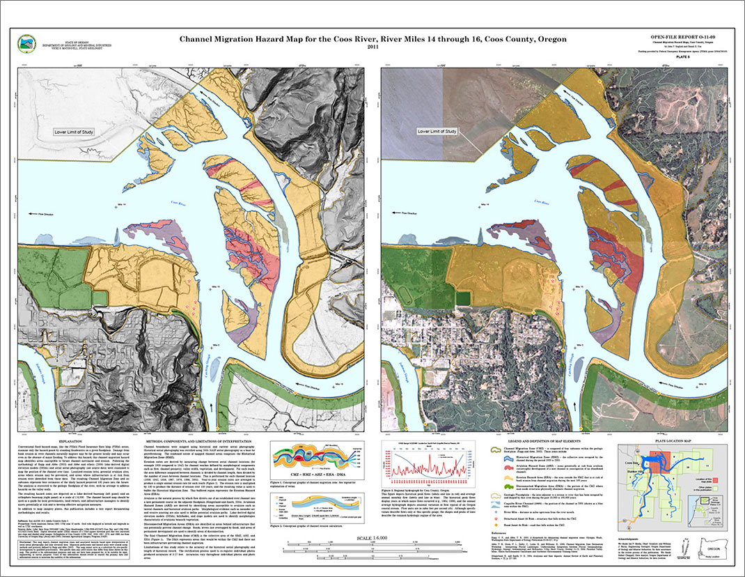 Open-File Report O-11-09, Channel Migration Hazard Maps, Coos County, Oregon, by John T. English and Daniel E. Coe.