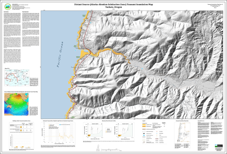 The Oregon Department of Geology and Mineral Industries (DOGAMI) has been identifying and mapping the tsunami inundation hazard along the Oregon coast since 1994. In Oregon, DOGAMI manages the National Tsunami Hazard Mitigation Program, which has been administered by the National Oceanic and Atmospheric Administration (NOAA) since 1995. DOGAMI’s work is designed to help cities, counties, and other sites in coastal areas reduce the potential for disastrous tsunami-related consequences by understanding and mitigating this geologic hazard. Using federal funding awarded by NOAA, DOGAMI has developed a new generation of tsunami inundation maps to help residents and visitors along the entire Oregon coast prepare for the next Cascadia Subduction Zone (CSZ) earthquake and tsunami.